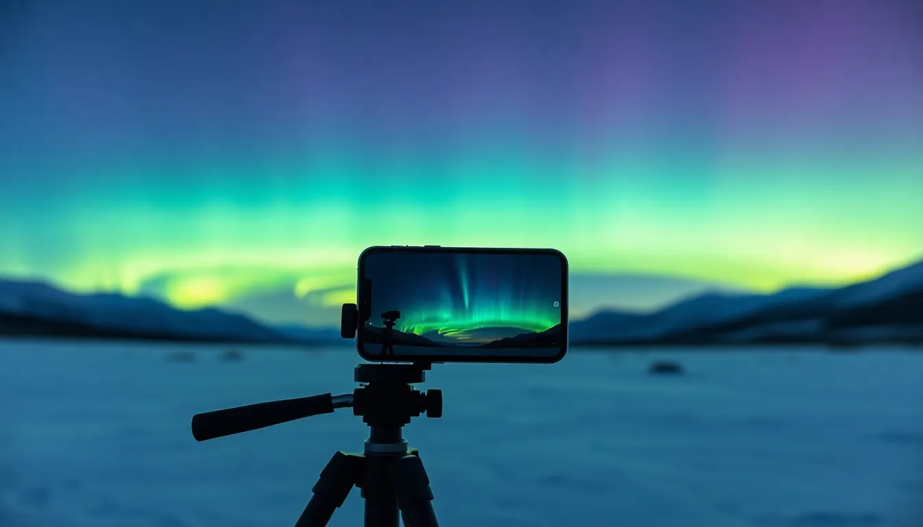 Bringing the right gear ensures successful photography experiences. An iPhone 13, fully charged, stands as the primary device for capturing images. A portable charger helps maintain battery life during long outings. Tripods stabilize the phone, allowing for longer exposure shots. Consider using gloves that allow for screen interaction, as cold weather can make handling devices challenging. Lastly, dress warmly to stay comfortable while waiting for the auroras to appear.